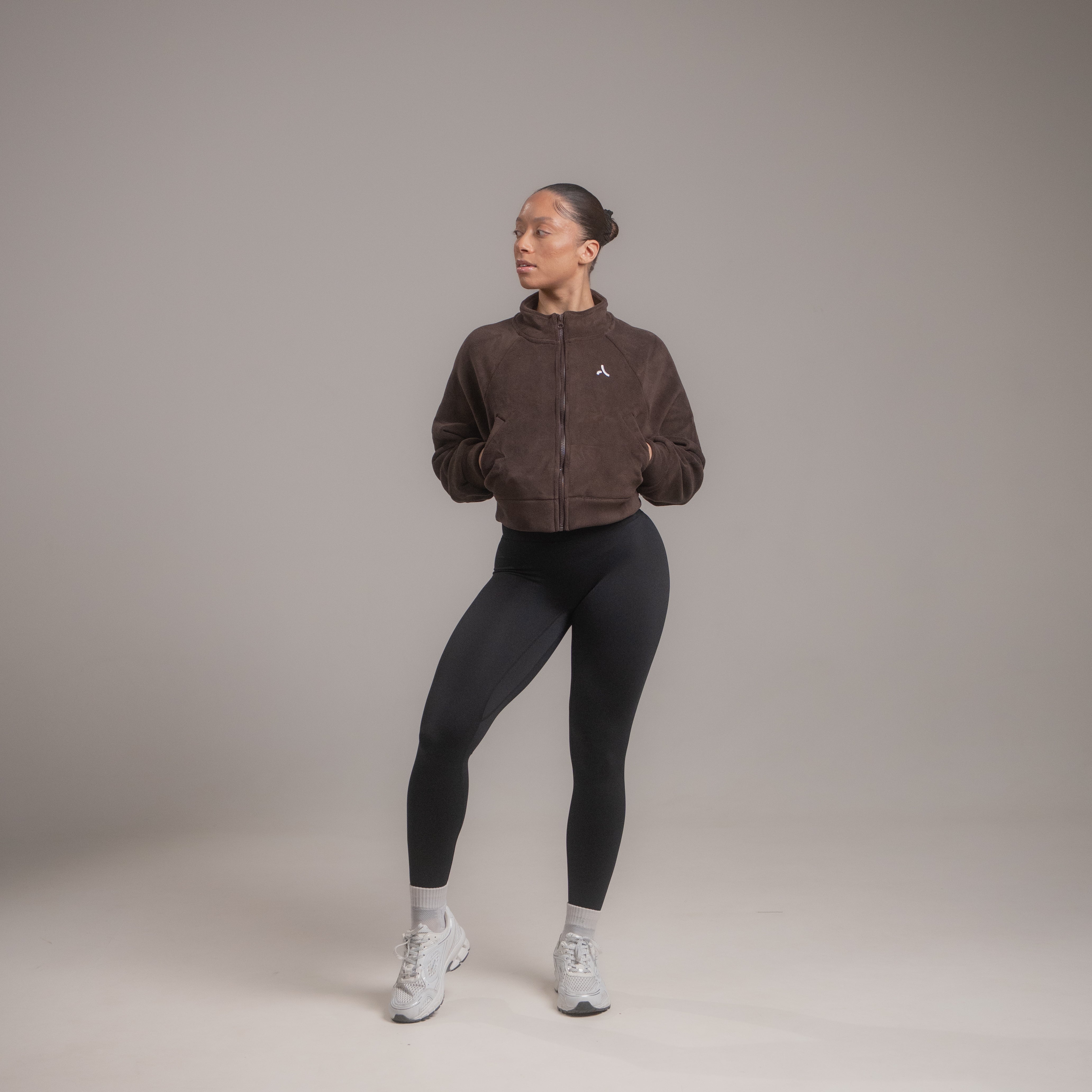 This jacket combines comfort, functionality, and minimalist style, ideal for women looking for a soft, stylish warm-up jacket that transitions seamlessly from gym to lifestyle.